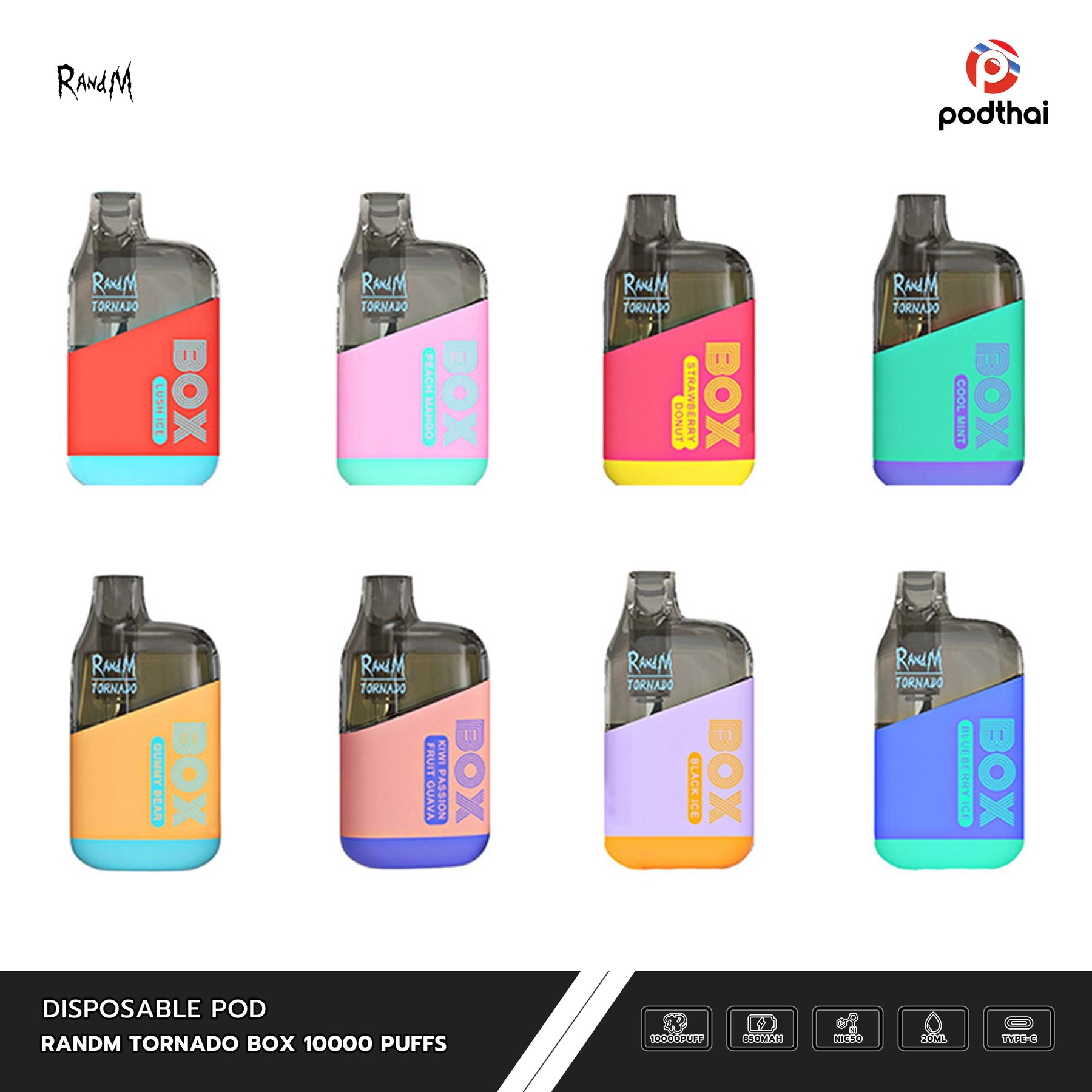 Randm Tornado Box 10000 Puffs Disposable Pod มี 22 กลิ่น: